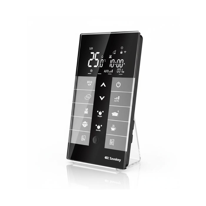 کلید ترموستات هوشمند Savekey با قابلیت کنترل دقیق دما، در مصرف انرژی صرفهجویی میکند و آسایش دمایی فضا را در سطحی حرفهای تأمین مینماید. این محصول با انواع سیستمهای تهویه مطبوع سازگار بوده و با سنسورهای محیطی نیز قابلیت ارتباط دارد.